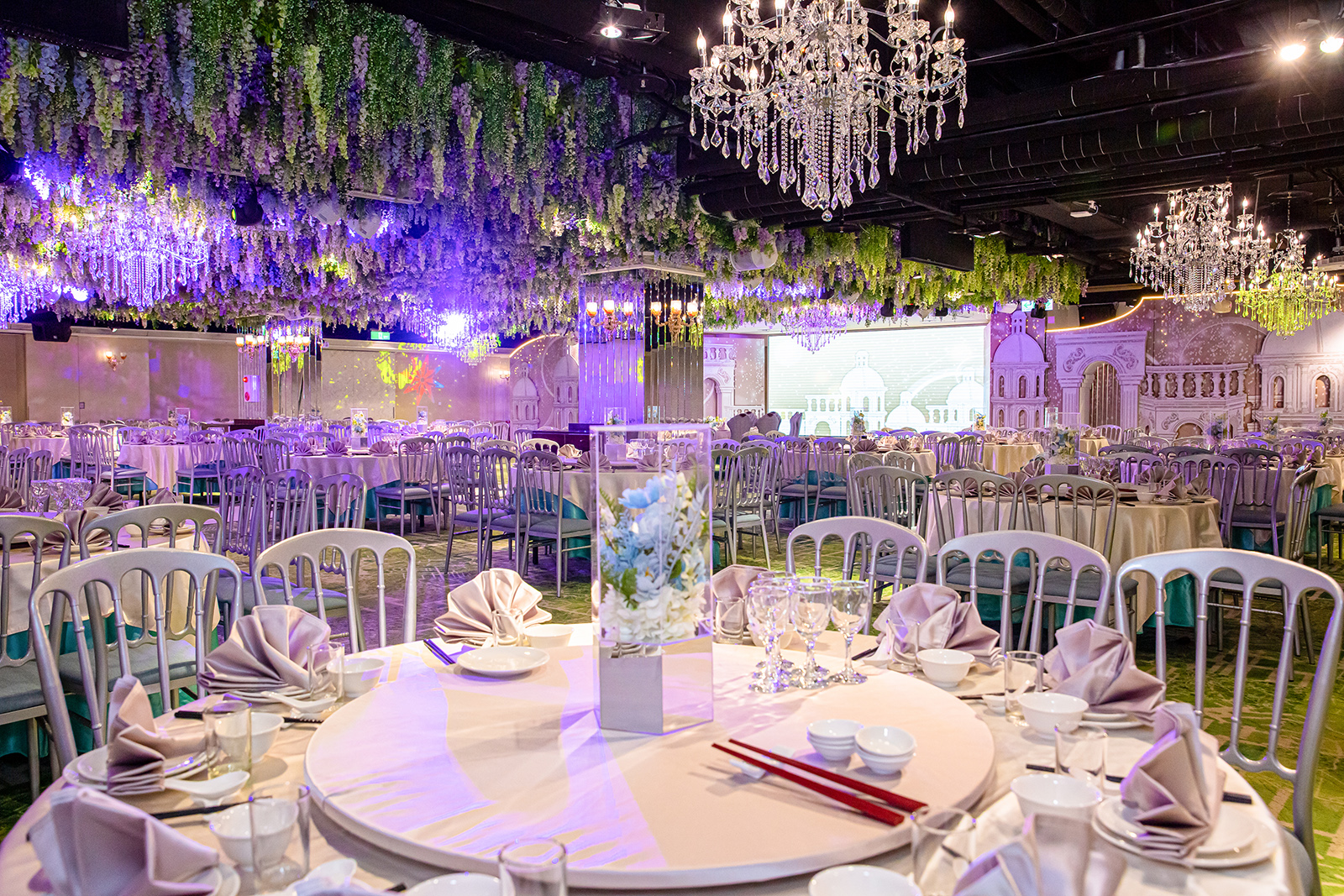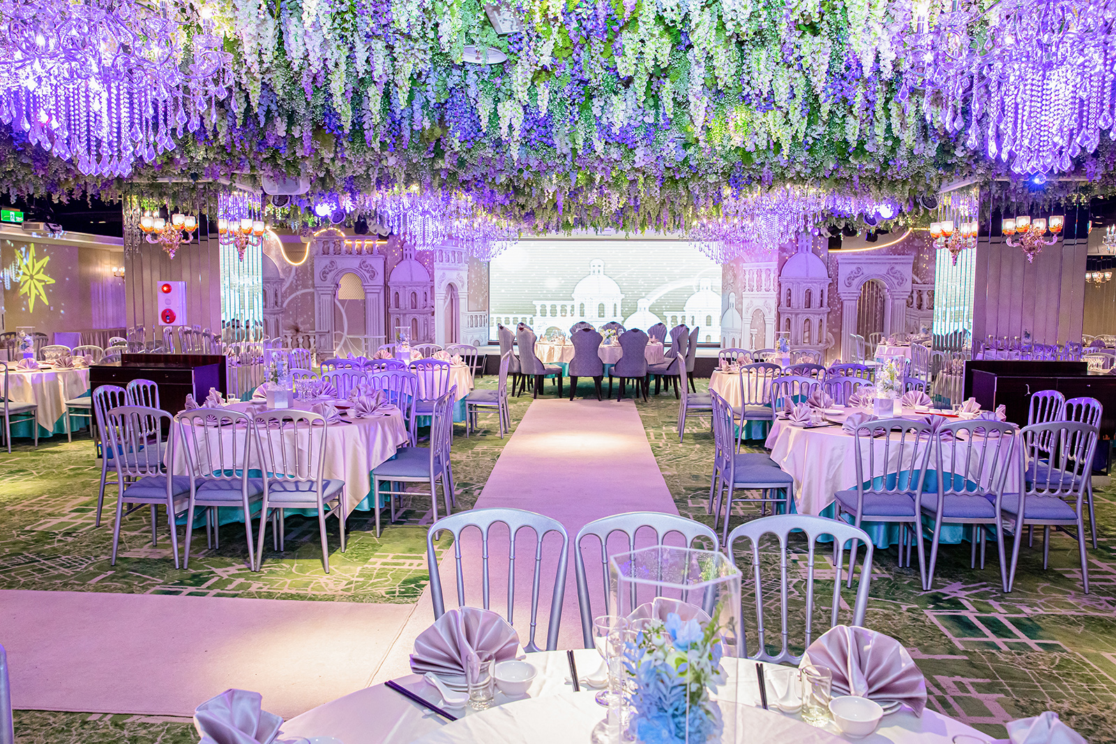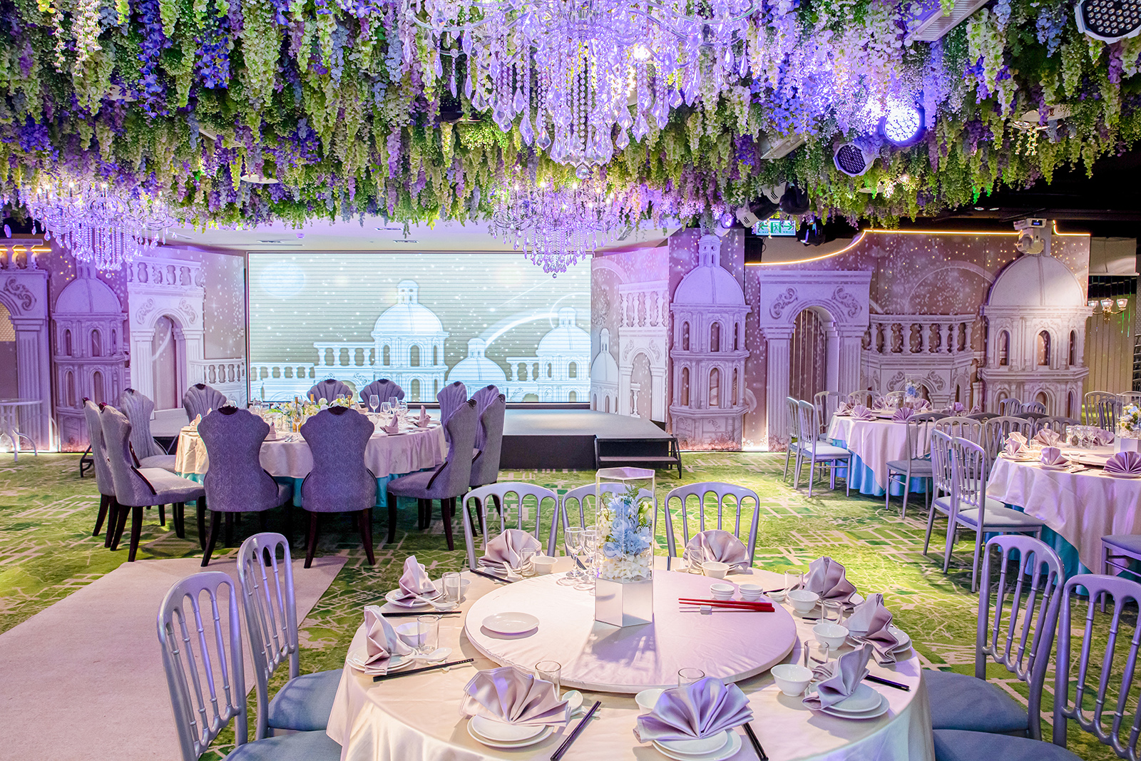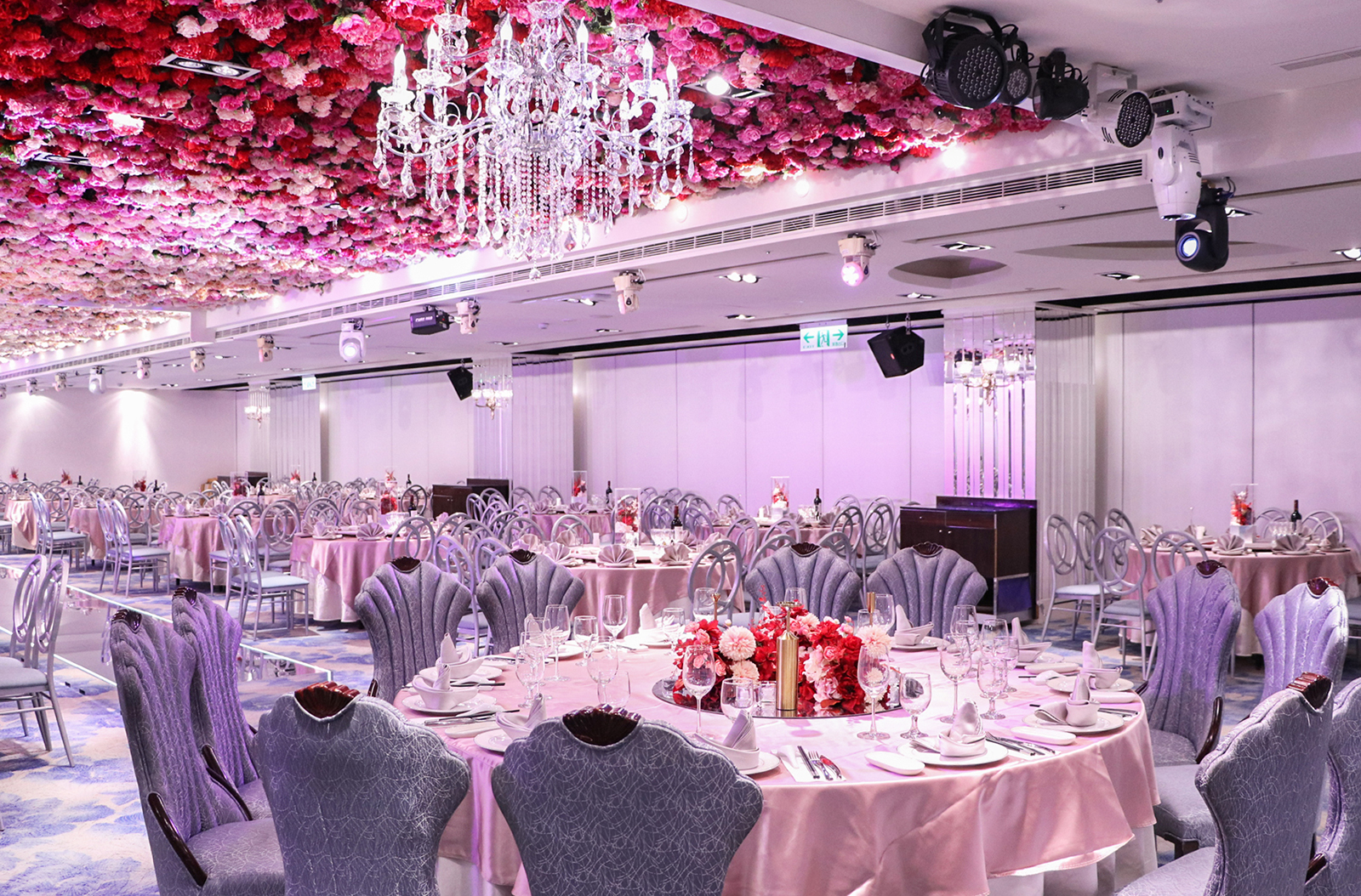 每一間宴會廳都是由金獎設計師操刀打造,將浪漫的花海元素帶進宴會廳內,